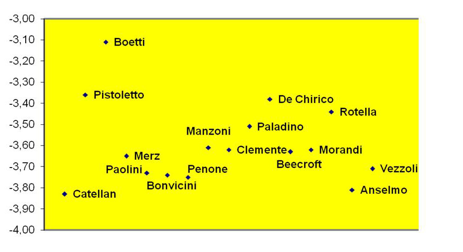 In generale la propensione a trattare tutti gli artisti risulta essere molto prudente , ma la posizione negativa dei singoli artisti risulta essere una indicazione di tendenza in un mercato molto incerto