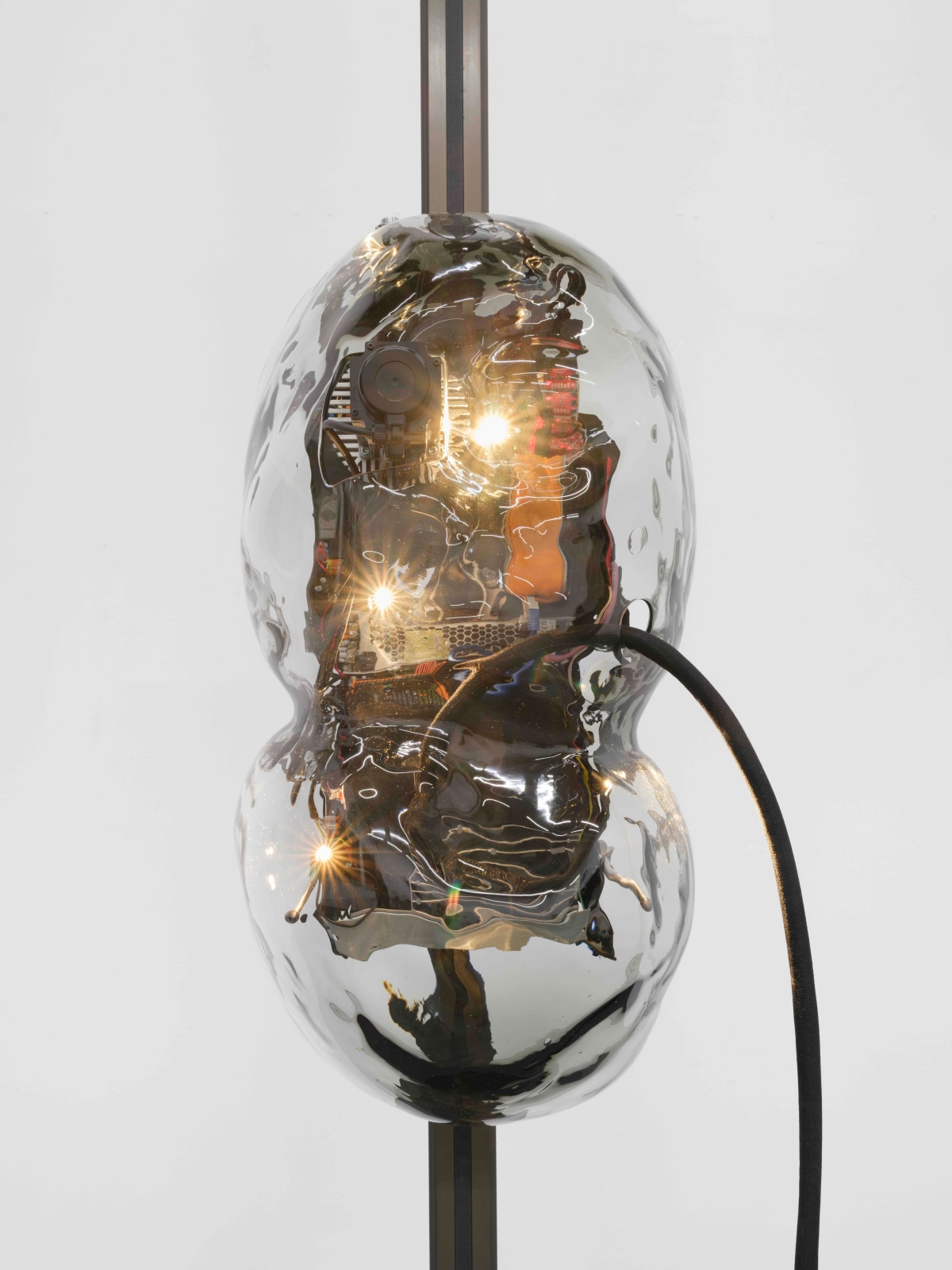 Philippe Parreno Crawler (small), 2024 Concrete tiles and base, steel track, glass shell, sensors, motors, lights, cables, computer tower 400 x 91 x 103 cm 157 1/2 x 35 7/8 x 40 1/2 in