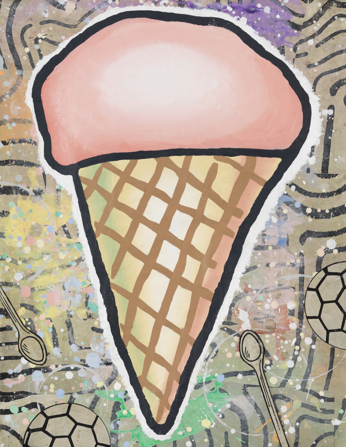 Donald Baechler (Hartford, Connecticut, 1956) segue, seppur con ironia, la strada del primitivismo, approdando successivamente ad una semplicità essenziale, che capovolge i canoni dell’arte classica. Bellezza come semplicità, associata alla purezza dell’infanzia, tempo di curiosità, giochi e prima alfabetizzazione. Collezionista di forme, crea opere di grande impatto visivo, caratterizzate da silhouette nere. I suoi dipinti sono conservati al Moma e al Guggenheim di New York, al Moca di Los Angeles e al Centre Pompidou di Parigi.